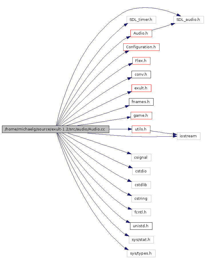 #include <SDL_audio.h>#include <SDL_timer.h>#include "Audio.h"#include "Configuration.h"#include "Flex.h"#include "conv.h"#include "exult.h"#include "fnames.h"#include "game.h"#include "utils.h"#include <csignal>#include <cstdio>#include <cstdlib>#include <cstring>#include <iostream>#include <fcntl.h>#include <unistd.h>#include <sys/stat.h>#include <sys/types.h>Include dependency graph for Audio.cc: