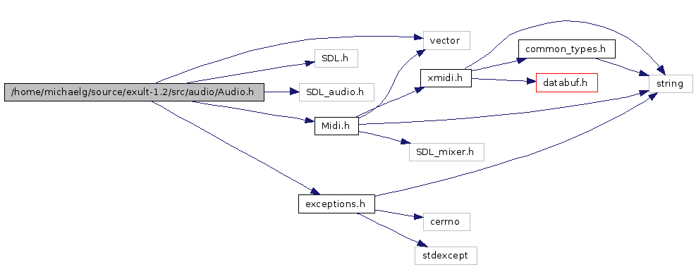 #include <vector>#include <SDL.h>#include <SDL_audio.h>#include "Midi.h"#include "exceptions.h"Include dependency graph for Audio.h: