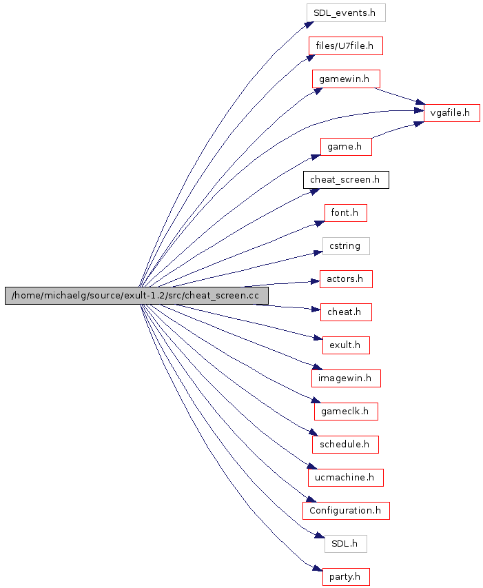 #include "SDL_events.h"#include "files/U7file.h"#include "gamewin.h"#include "game.h"#include "cheat_screen.h"#include "font.h"#include "cstring"#include "actors.h"#include "cheat.h"#include "exult.h"#include "imagewin.h"#include "vgafile.h"#include "gameclk.h"#include "schedule.h"#include "ucmachine.h"#include "Configuration.h"#include "SDL.h"#include "party.h"Include dependency graph for cheat_screen.cc: