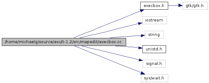#include "execbox.h"#include <iostream>#include <string>#include <unistd.h>#include <signal.h>#include <sys/wait.h>Include dependency graph for execbox.cc: