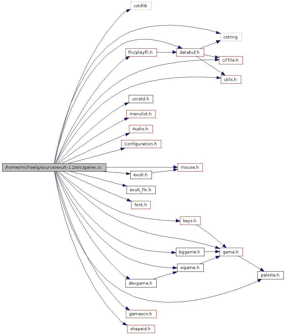 #include <cstdlib>#include <cstring>#include <unistd.h>#include "menulist.h"#include "Audio.h"#include "Configuration.h"#include "databuf.h"#include "exult.h"#include "exult_flx.h"#include "files/U7file.h"#include "files/utils.h"#include "flic/playfli.h"#include "font.h"#include "game.h"#include "bggame.h"#include "sigame.h"#include "devgame.h"#include "gamewin.h"#include "keys.h"#include "mouse.h"#include "palette.h"#include "shapeid.h"Include dependency graph for game.cc: