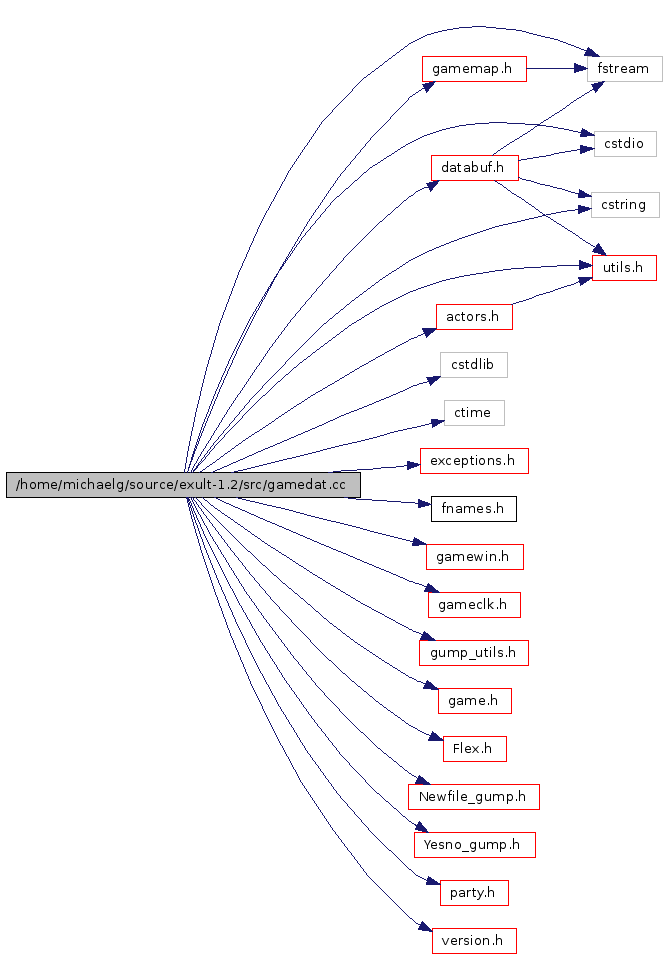 #include <fstream>#include <cstdio>#include <cstdlib>#include <cstring>#include <ctime>#include "exceptions.h"#include "fnames.h"#include "gamewin.h"#include "gameclk.h"#include "gamemap.h"#include "utils.h"#include "gump_utils.h"#include "game.h"#include "Flex.h"#include "databuf.h"#include "Newfile_gump.h"#include "Yesno_gump.h"#include "actors.h"#include "party.h"#include "version.h"Include dependency graph for gamedat.cc: