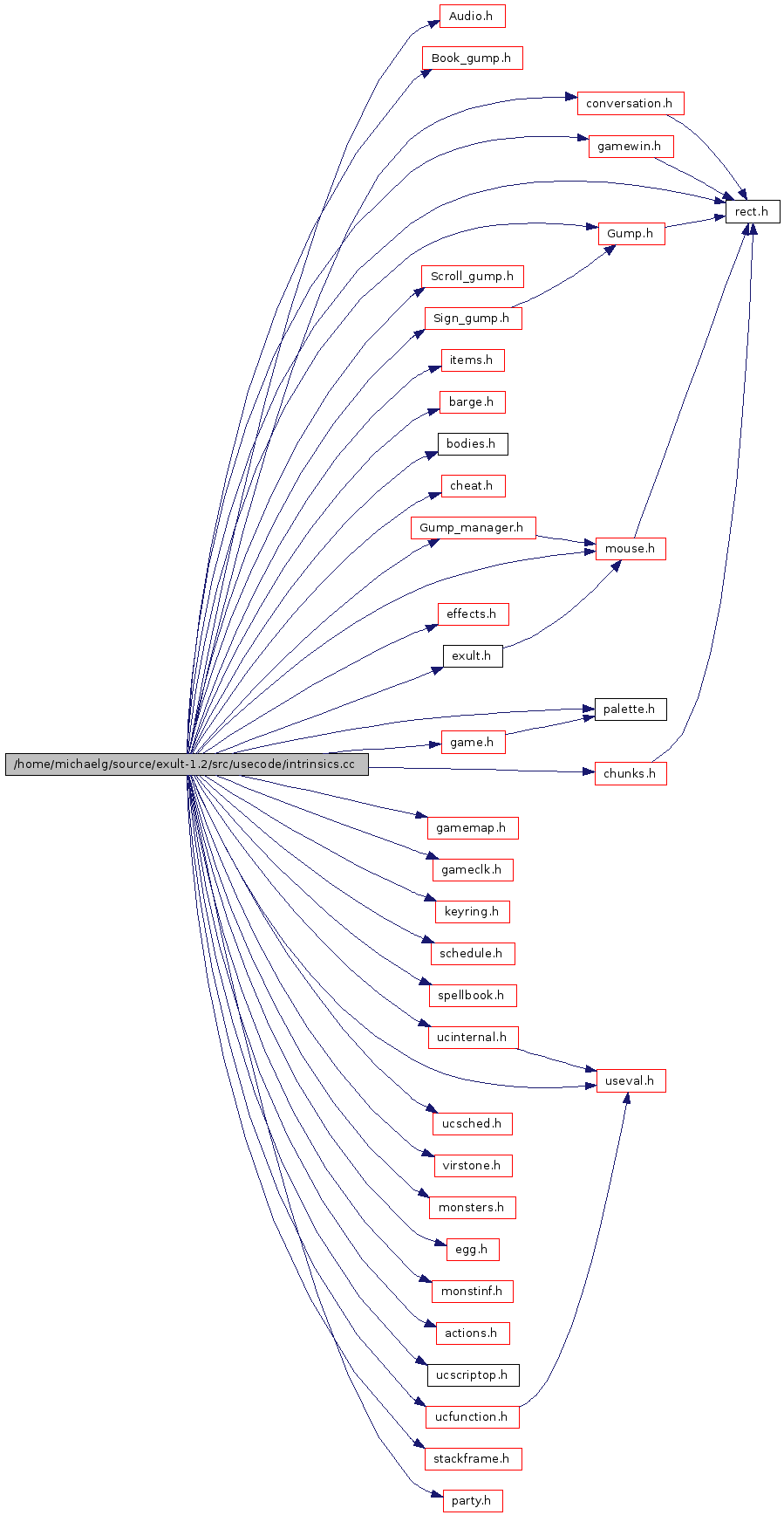#include "Audio.h"#include "Book_gump.h"#include "Gump.h"#include "Gump_manager.h"#include "Scroll_gump.h"#include "Sign_gump.h"#include "items.h"#include "barge.h"#include "bodies.h"#include "cheat.h"#include "chunks.h"#include "conversation.h"#include "effects.h"#include "exult.h"#include "game.h"#include "gamewin.h"#include "gamemap.h"#include "gameclk.h"#include "keyring.h"#include "mouse.h"#include "rect.h"#include "schedule.h"#include "spellbook.h"#include "ucinternal.h"#include "ucsched.h"#include "useval.h"#include "virstone.h"#include "monsters.h"#include "egg.h"#include "monstinf.h"#include "actions.h"#include "ucscriptop.h"#include "ucfunction.h"#include "palette.h"#include "stackframe.h"#include "party.h"Include dependency graph for intrinsics.cc: