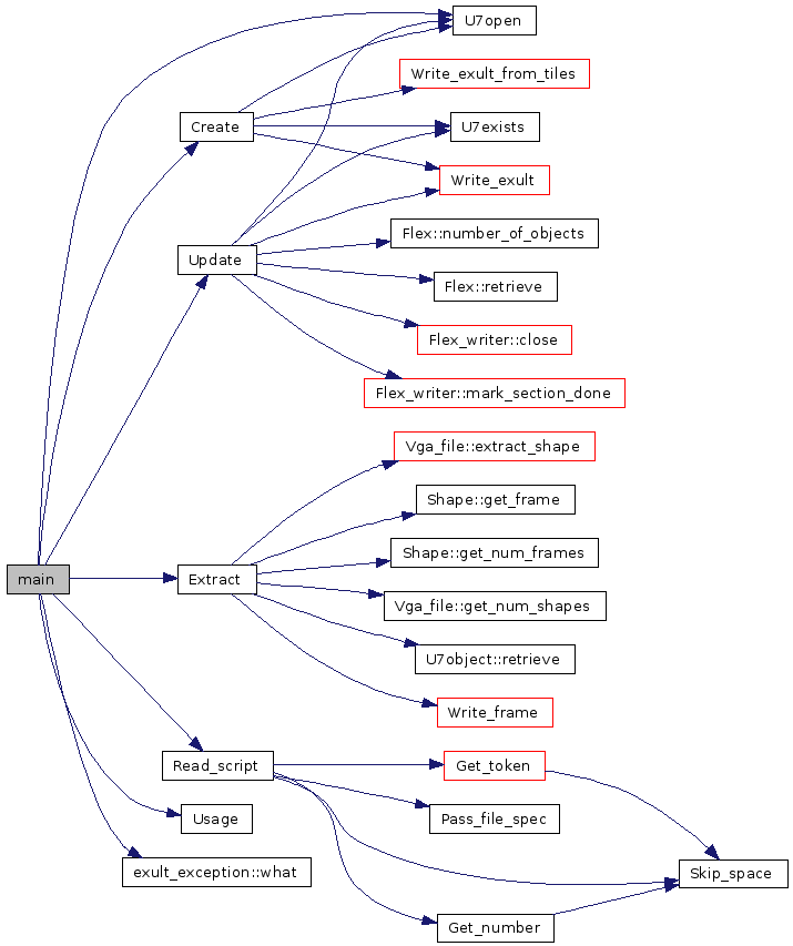 References Create(), Extract(), Read_script(), U7open(), Update(), Usage(), and exult_exception::what().