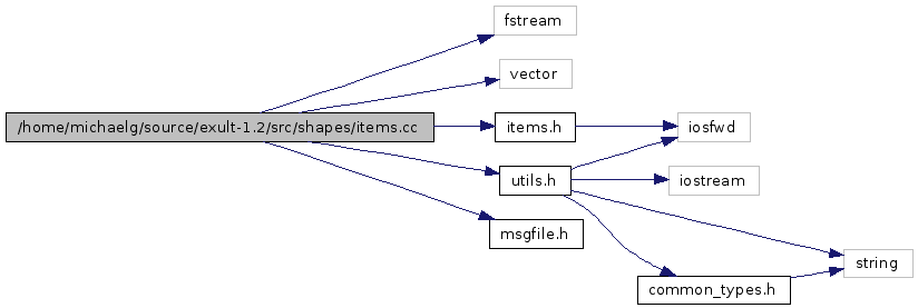 #include <fstream>#include <vector>#include "items.h"#include "utils.h"#include "msgfile.h"Include dependency graph for items.cc: