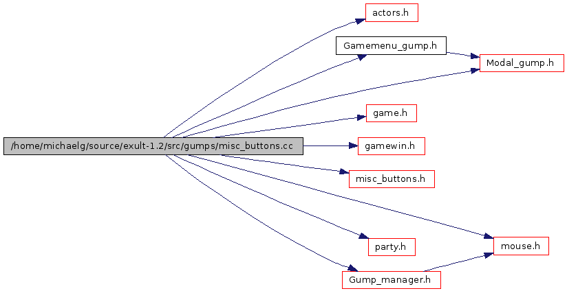 #include "actors.h"#include "Gamemenu_gump.h"#include "game.h"#include "gamewin.h"#include "misc_buttons.h"#include "Modal_gump.h"#include "mouse.h"#include "party.h"#include "Gump_manager.h"Include dependency graph for misc_buttons.cc: