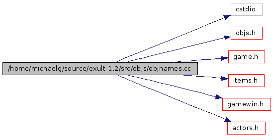 #include <cstdio>#include "objs.h"#include "game.h"#include "items.h"#include "gamewin.h"#include "actors.h"Include dependency graph for objnames.cc: