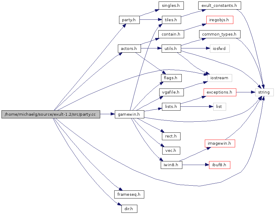 #include <iostream>#include <string>#include "party.h"#include "actors.h"#include "gamewin.h"#include "frameseq.h"#include "dir.h"Include dependency graph for party.cc: