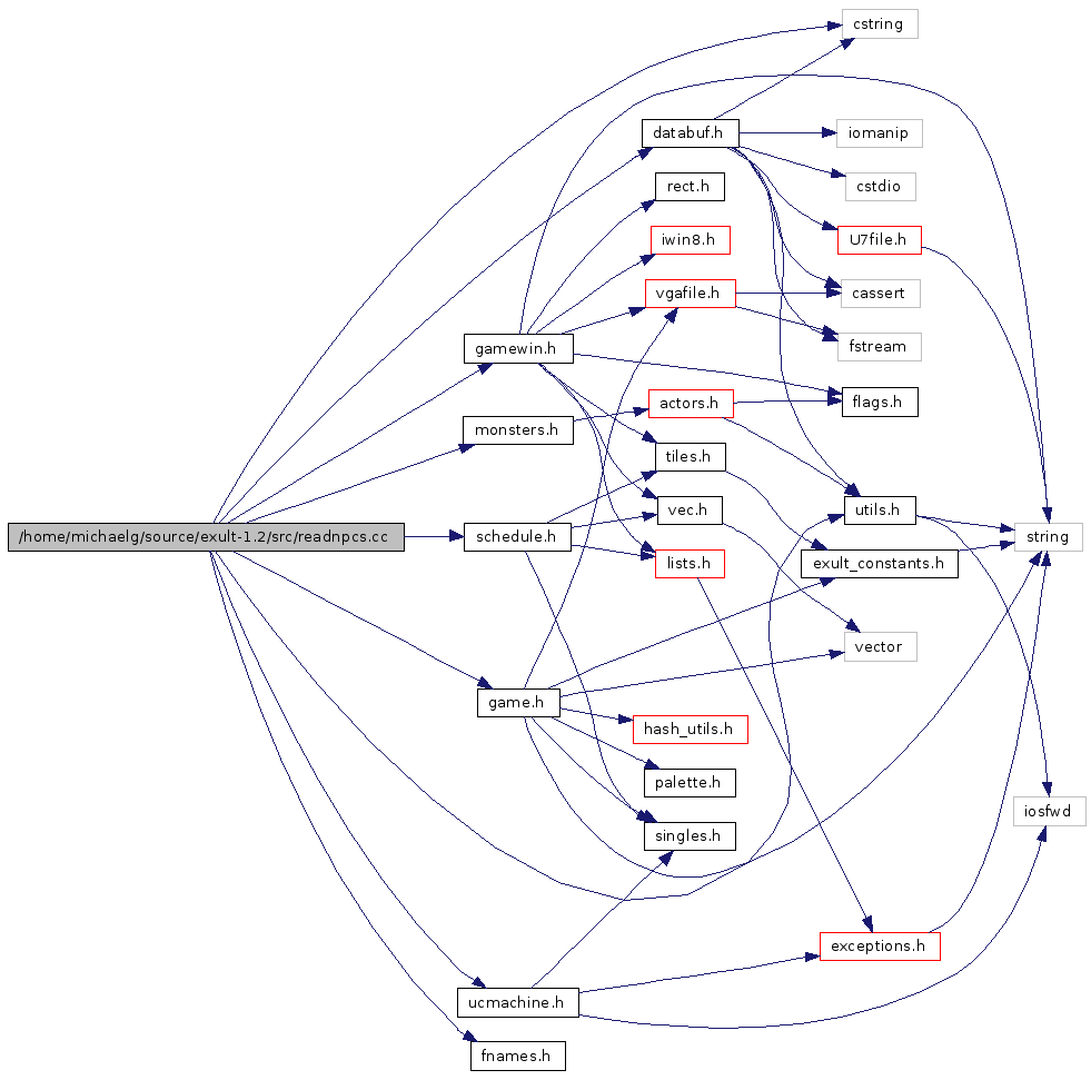 #include <cstring>#include "gamewin.h"#include "game.h"#include "monsters.h"#include "ucmachine.h"#include "utils.h"#include "fnames.h"#include "schedule.h"#include "databuf.h"Include dependency graph for readnpcs.cc: