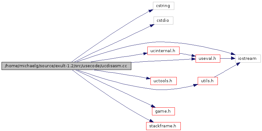 #include <cstring>#include <cstdio>#include <iostream>#include "ucinternal.h"#include "uctools.h"#include "utils.h"#include "useval.h"#include "game.h"#include "stackframe.h"Include dependency graph for ucdisasm.cc: