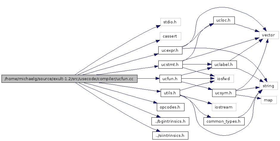 #include <stdio.h>#include <cassert>#include "ucfun.h"#include "ucstmt.h"#include "utils.h"#include "opcodes.h"#include "ucexpr.h"#include "../bgintrinsics.h"#include "../siintrinsics.h"Include dependency graph for ucfun.cc:
