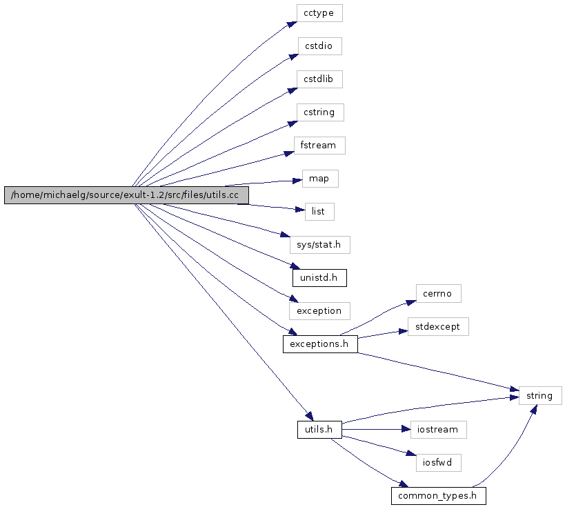 #include <cctype>#include <cstdio>#include <cstdlib>#include <cstring>#include <fstream>#include <map>#include <list>#include <sys/stat.h>#include <unistd.h>#include <exception>#include "exceptions.h"#include "utils.h"Include dependency graph for utils.cc: